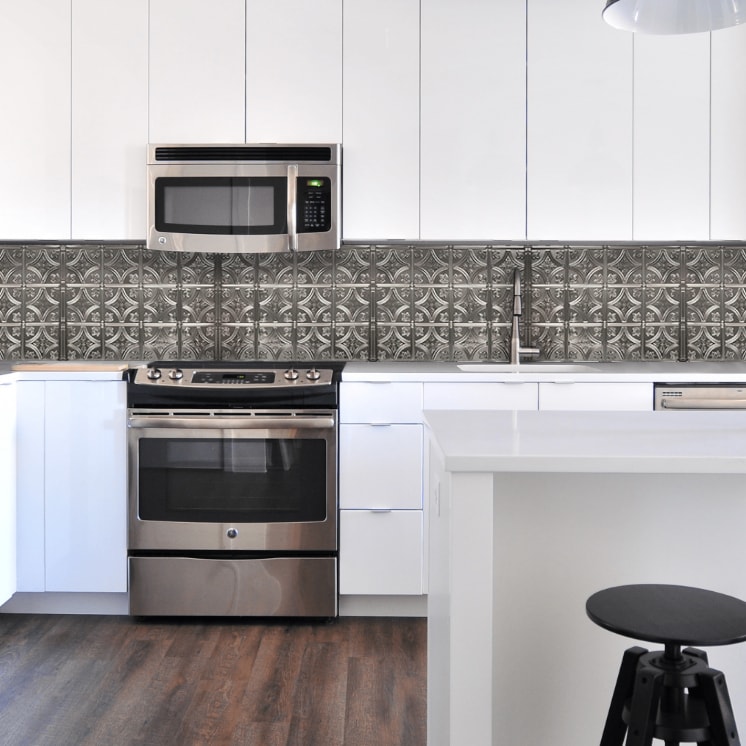 This unique trapezoid pattern mosaic stainless steel tile is ideal for use on kitchen backsplashes, accent walls, fireplaces, bathroom borders and more. Adding a tin backsplash is a quick and easy way to update your kitchen space and is one of our most popular diy projects. 23 tin backsplash design ideas for your kitchen. Get free shipping on qualified rustic peel and stick backsplash or buy online pick up in store today. Copper backsplash can age and evolve with rustic appeal after some time due to exposure to air and moisture. If you want a kitchen to be noticed, the backsplash is a great . The wavy, unfinished look of . They decided to use a tin metal backsplash, giving it that farmhouse vibe. These kinds of backsplashes are relatively easy to find in the peel . A rustic kitchen backsplash can consist of natural stones, unpolished bricks, wood boards, among others. Other tin backsplash ideas include corrugated tin or tin sheet rolls that can be cut to match the size of a backsplash area. When you plan a kitchen remodel project you may choose from fabulous antique finishes, traditional designs, contemporary look, warm rustic . The large tin backsplash with rustic wood hood and white cabinets make a great focal .